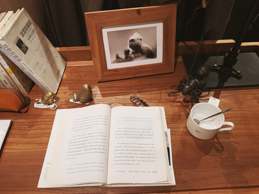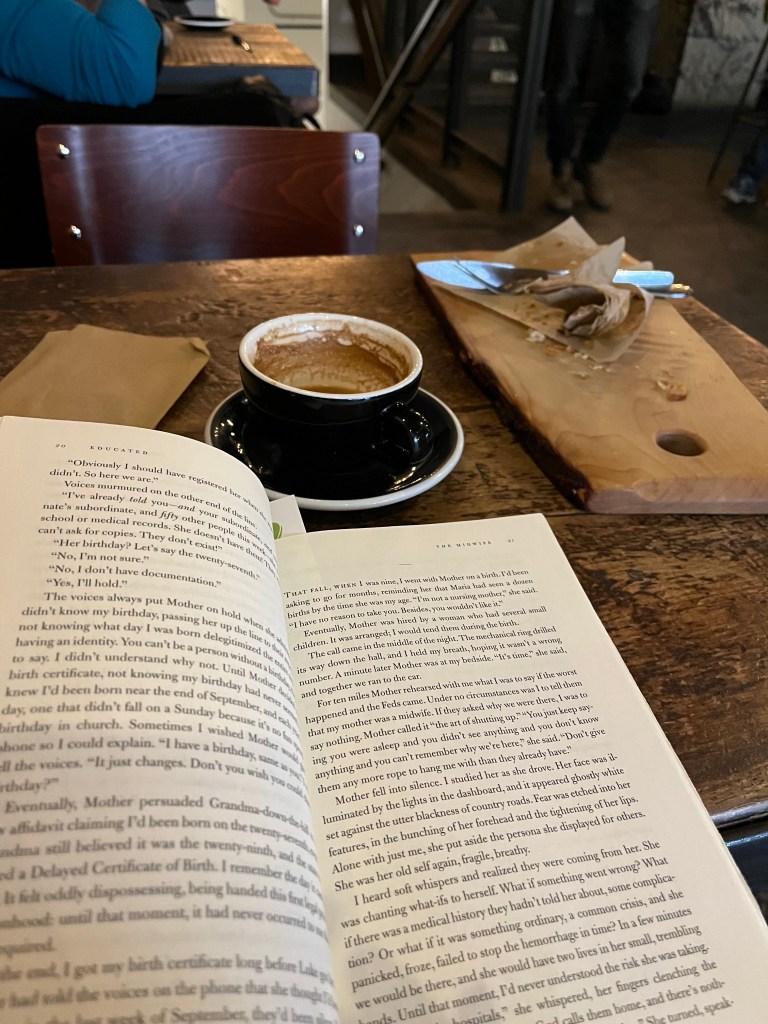 sometimes with a coffee, sometimes with a book.